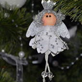 Симпатичний підвісний ангелочок декорований сріблястими дощиками