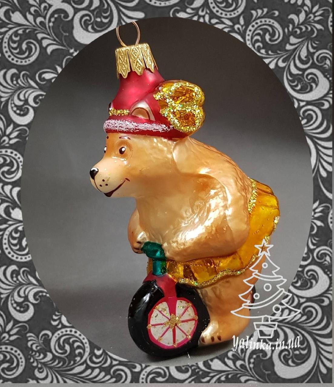 Новорічна ялинкова іграшка "Ведмідь на велосипеді" виготовлена із скла і з любов'ю розфарбована яскравими, насиченими фарбами і прикрашена присипкою. Виробник ― Україна. Розмір іграшки: см Іграшка упакована в індивідуальну упаковку.