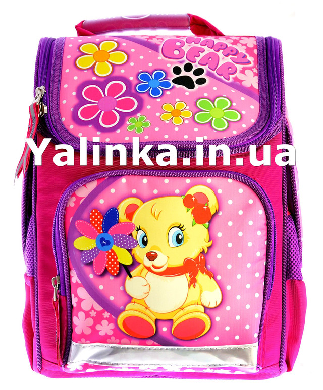 Ранець виконаний в рожево-малинових тонах з малюнком ведмедика на передньому кишені і квіточками на кришці. Юна школярка залишиться задоволеною!
